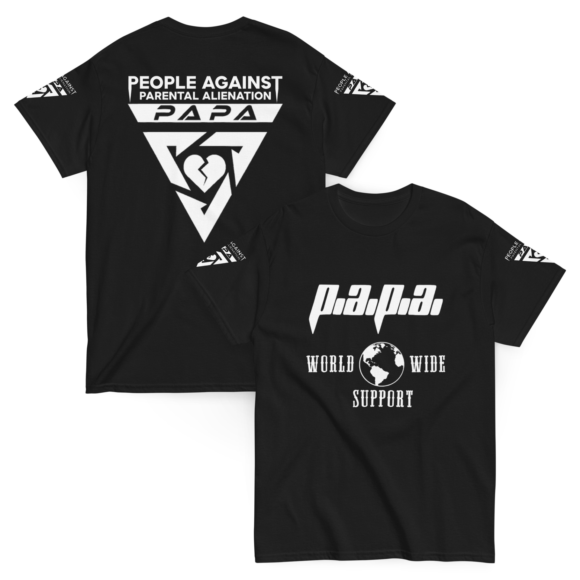 Let everyone know that P.A.P.A. offers support to alienated families WORLD WIDE with this clean cut, eye catching design that has been proven to demand attention and get people asking questions!